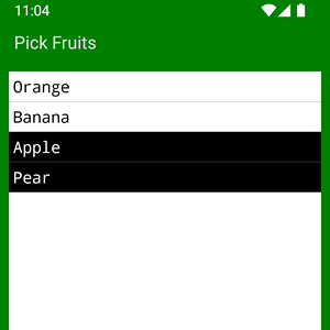 multi-selection. This is the highlight color of a single selection. color A color string default is #0xFF00C000